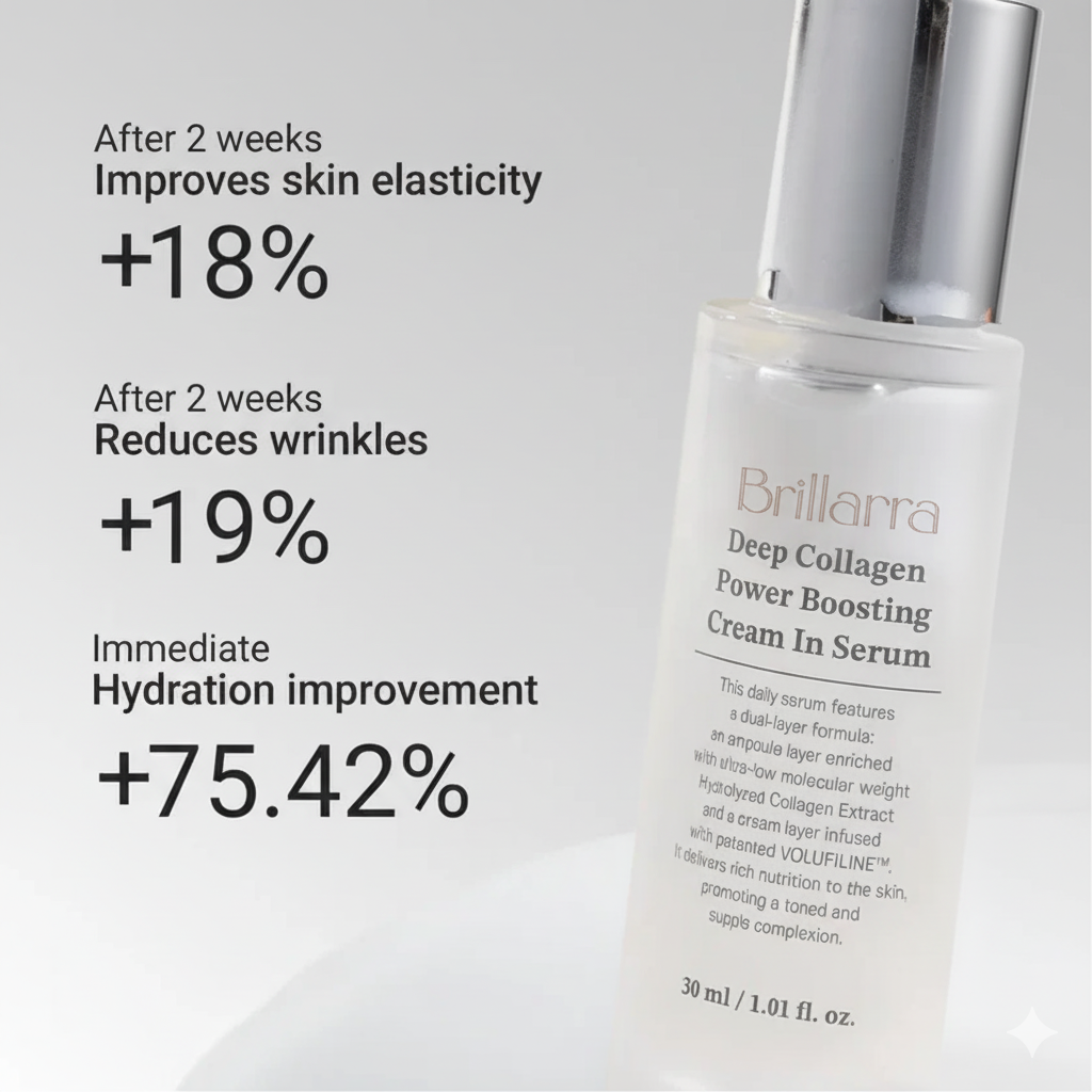 A unique Cream-In-Serum with Ultra-Low Molecular Collagen and Volufiline to deeply fill wrinkles and restore volume.